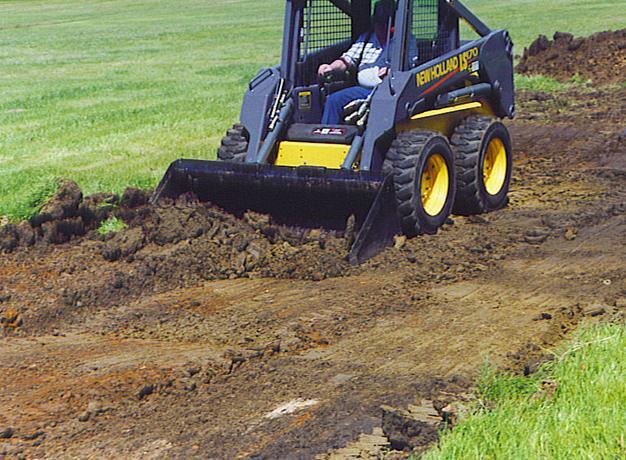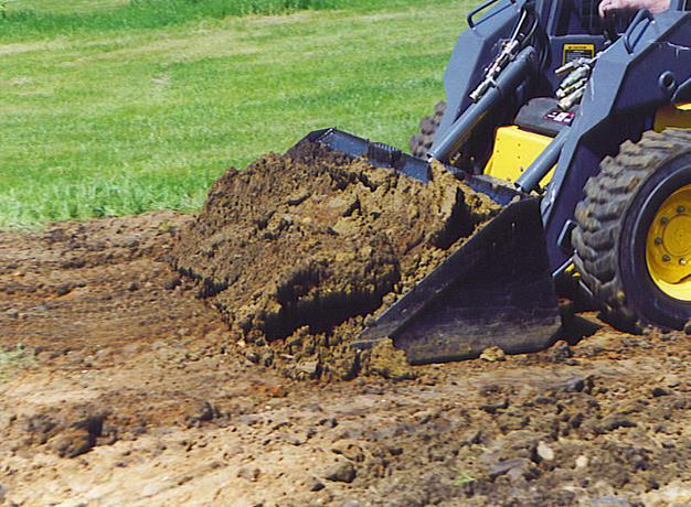 - Square bottom permits “back dragging” to level your work. Sets close to the ground. Landscapers love it.
