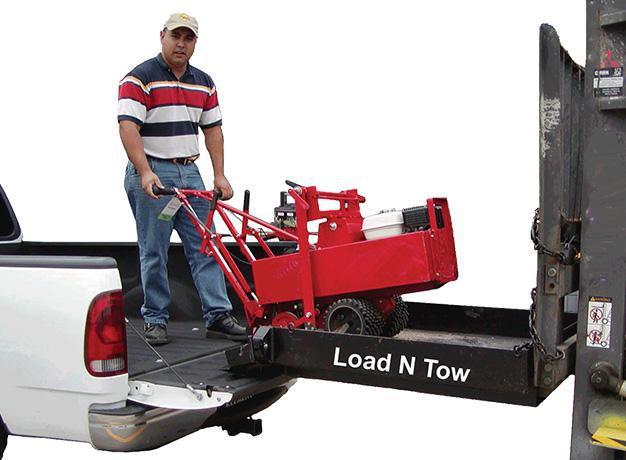 - Built-in receiver for moving trailer-mounted equipment. Allows standard 2” sq. trailer adapter