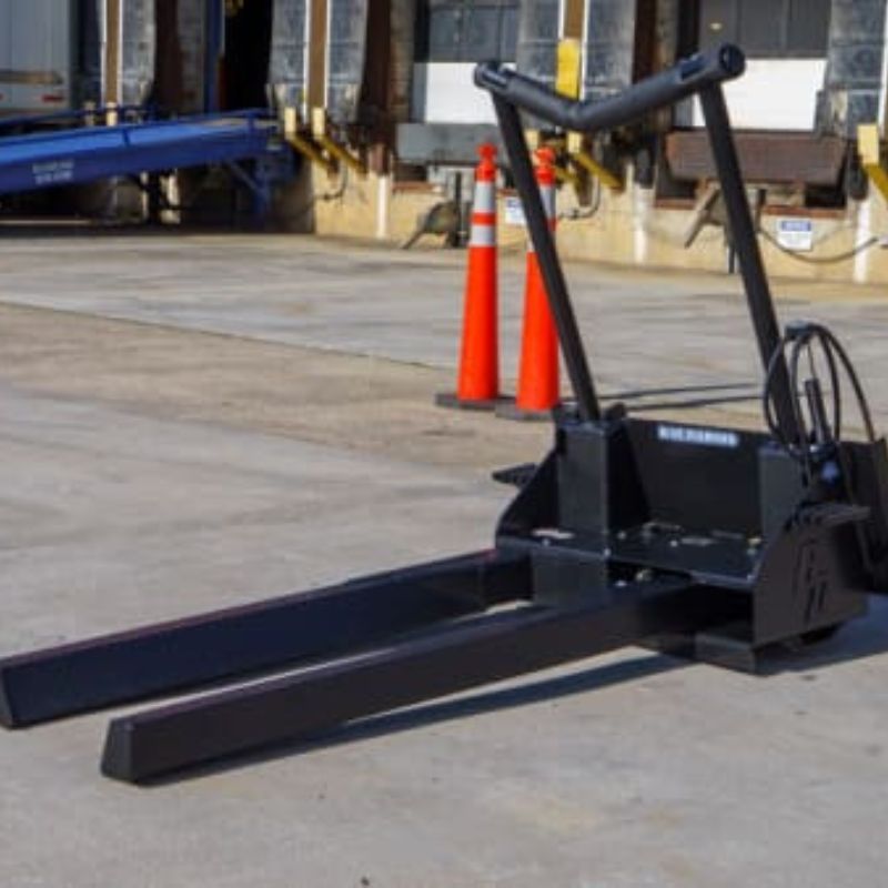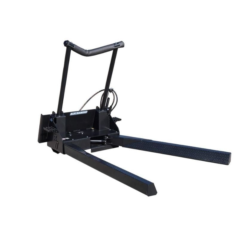 This Nursery Fork from Blue Diamond is created for the operator who handles tree bulbs frequently with safety step. The attachment includes couplers, hoses, and a protective foam sleeve to cradle the tree trunk. The hoses can be routed either to the left or right side, wherever you need them to be. It has a hose saver spring that prevents the hose from getting pinched in between the mount and the machine. All pivots have grease fittings and can be accessed without removing any panels.
