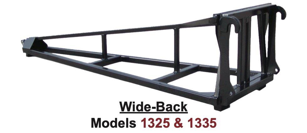 - JCB Q-Fit, Gehl Dynacarrier, Bobcat Versa Handler and Ingersoll-Rand models VR518, VR623, VR638 quick-tach designs require the “Wide Back”.
